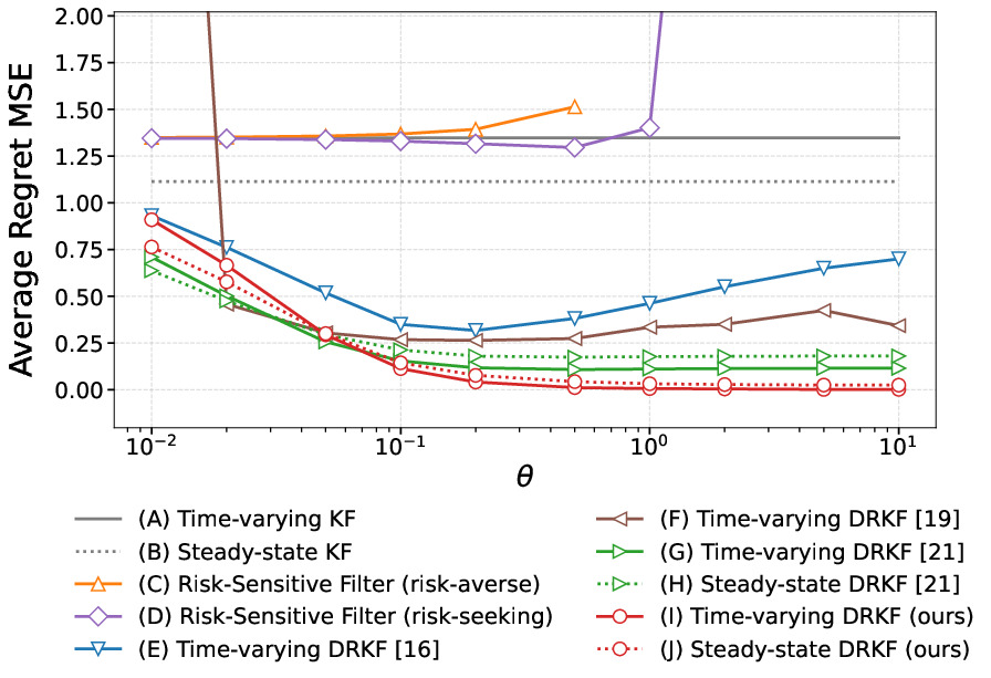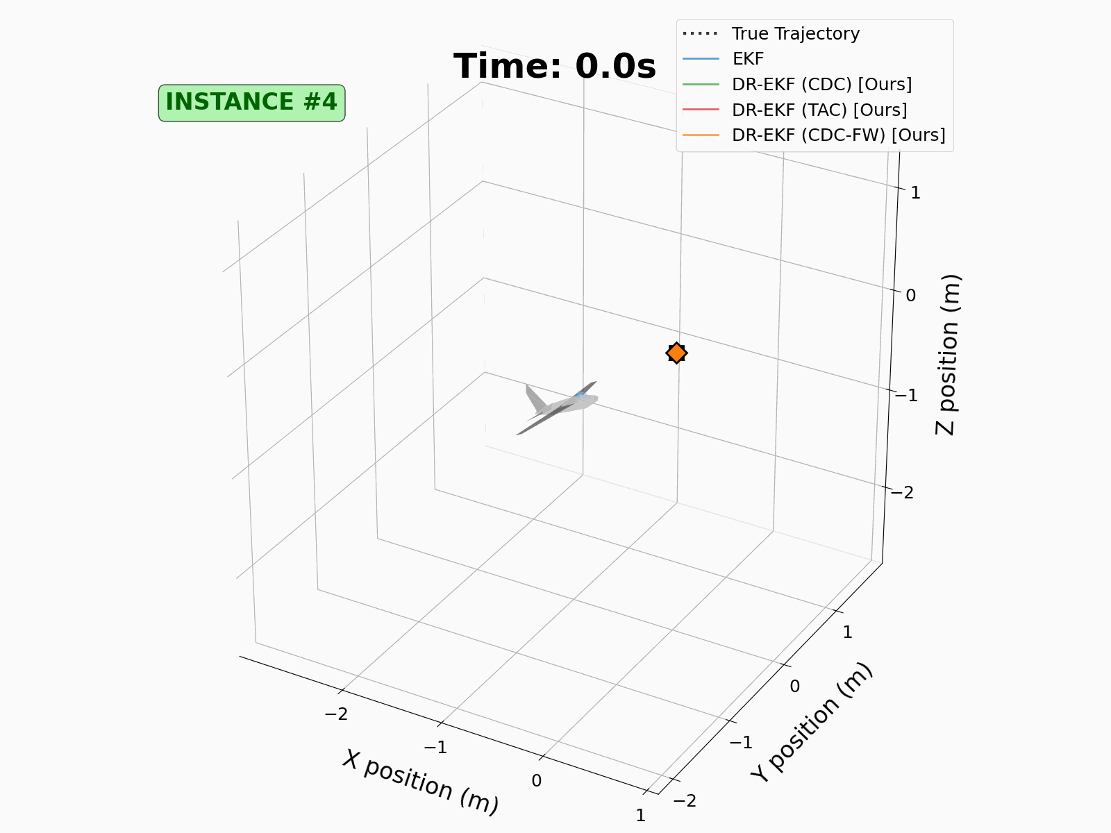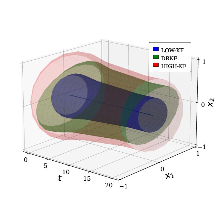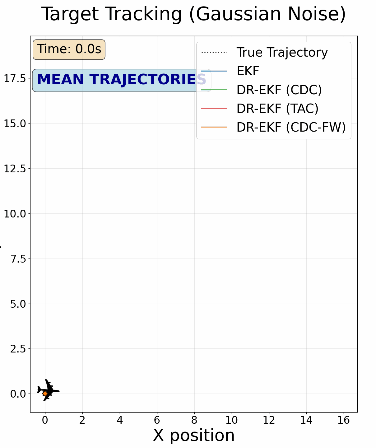 2D trajectory tracking control where each controller has nominal disturbance and noise distributions derived from statistical learning methods, which inherently contain errors